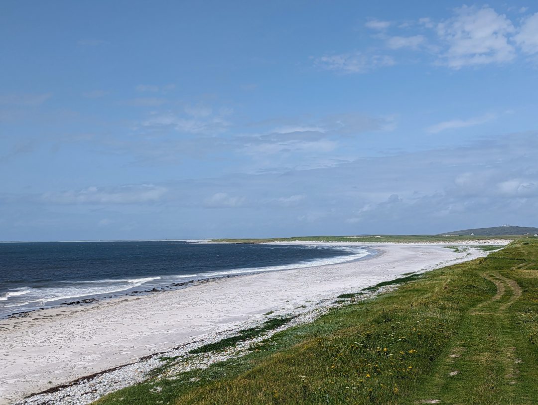 This was a short walk (and easy to extend) but very satisfying; lots of oyster catchers to entertain us as well as other birds. The machair was also lovely, especially on the second part of the walk to the south.